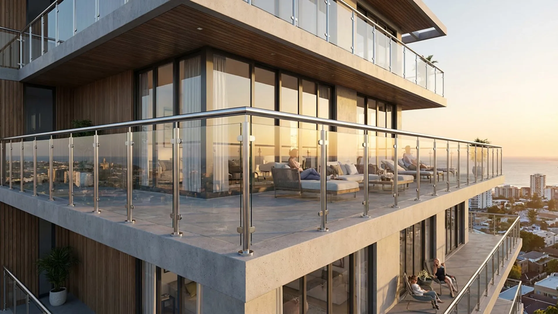 Barandas para balcones, escaleras y terrazas en acero inoxidable y vidrio.